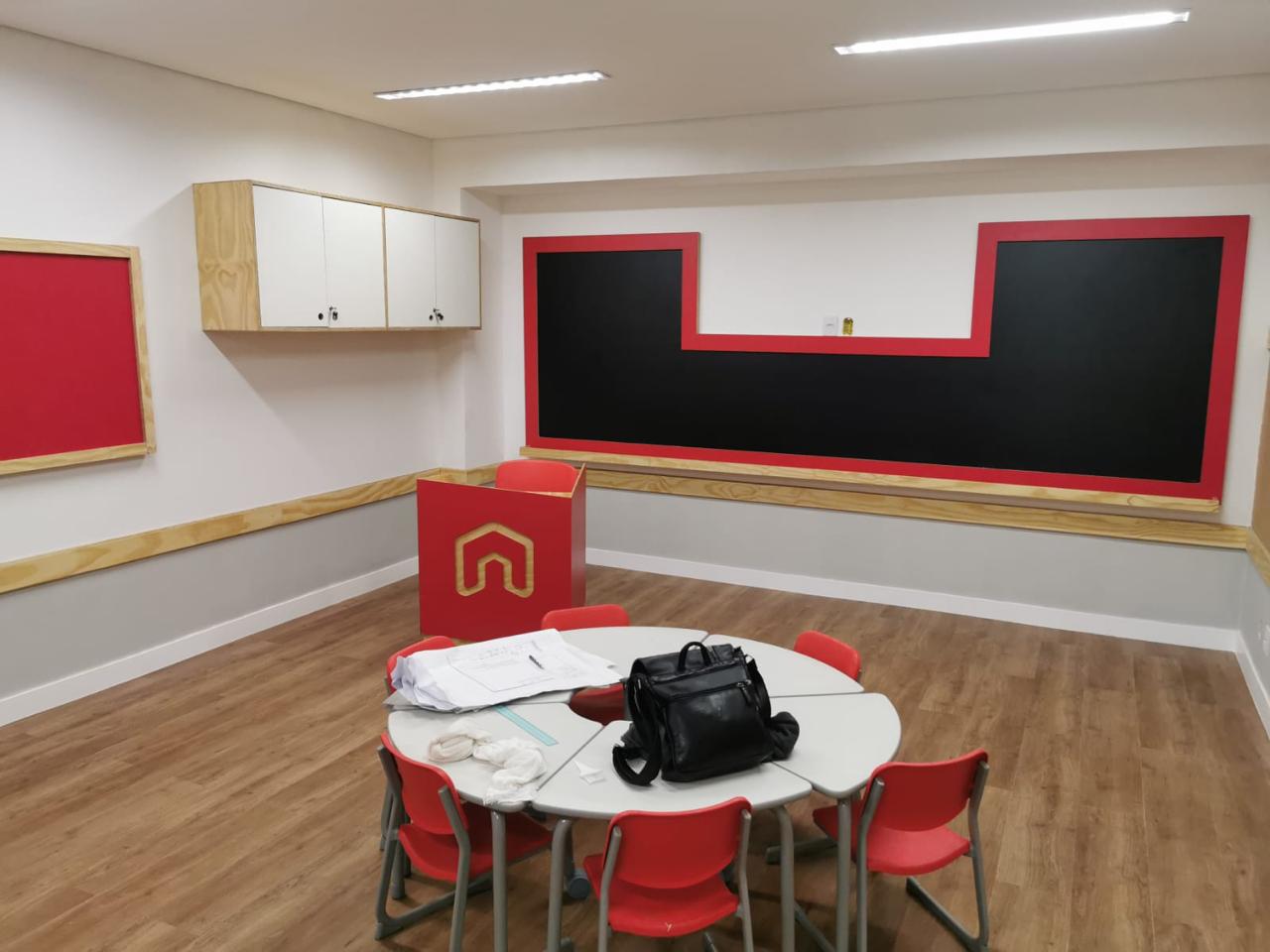 O retrofit de 1.200m² no Pacaembu uniu engenharia pesada e refinamento estético. Através de reforços estruturais e do uso estratégico de cobogós e elementos vazados, criamos salas de aula que respiram e se conectam, refletindo a proposta pedagógica aberta e colaborativa da Red House..